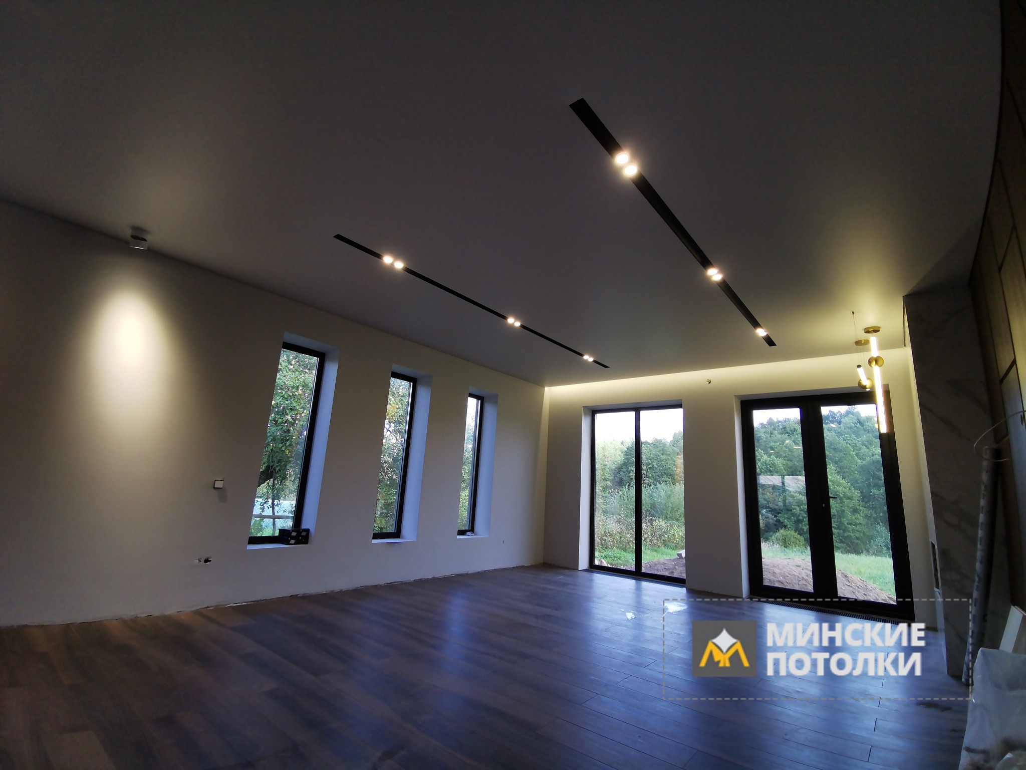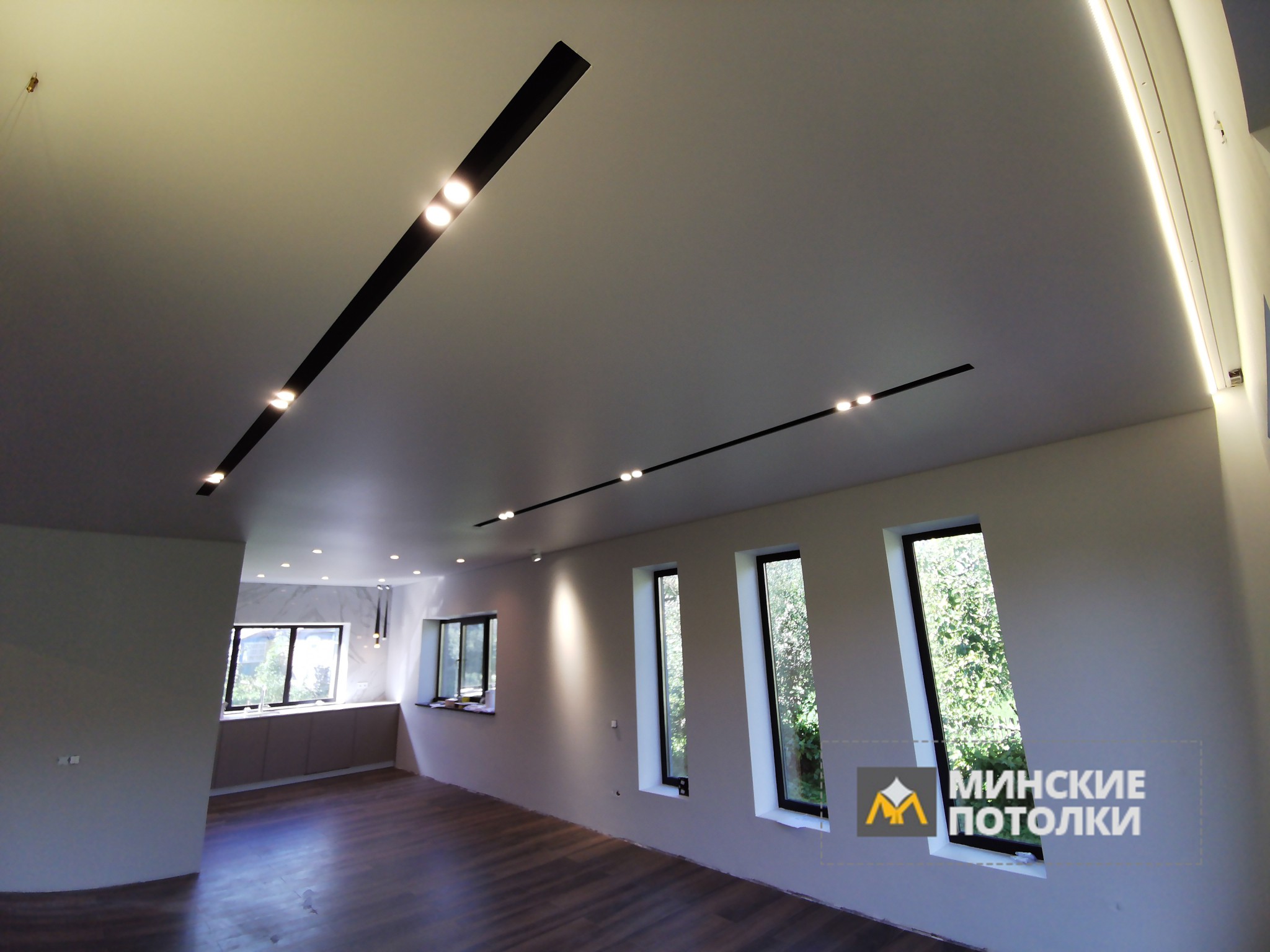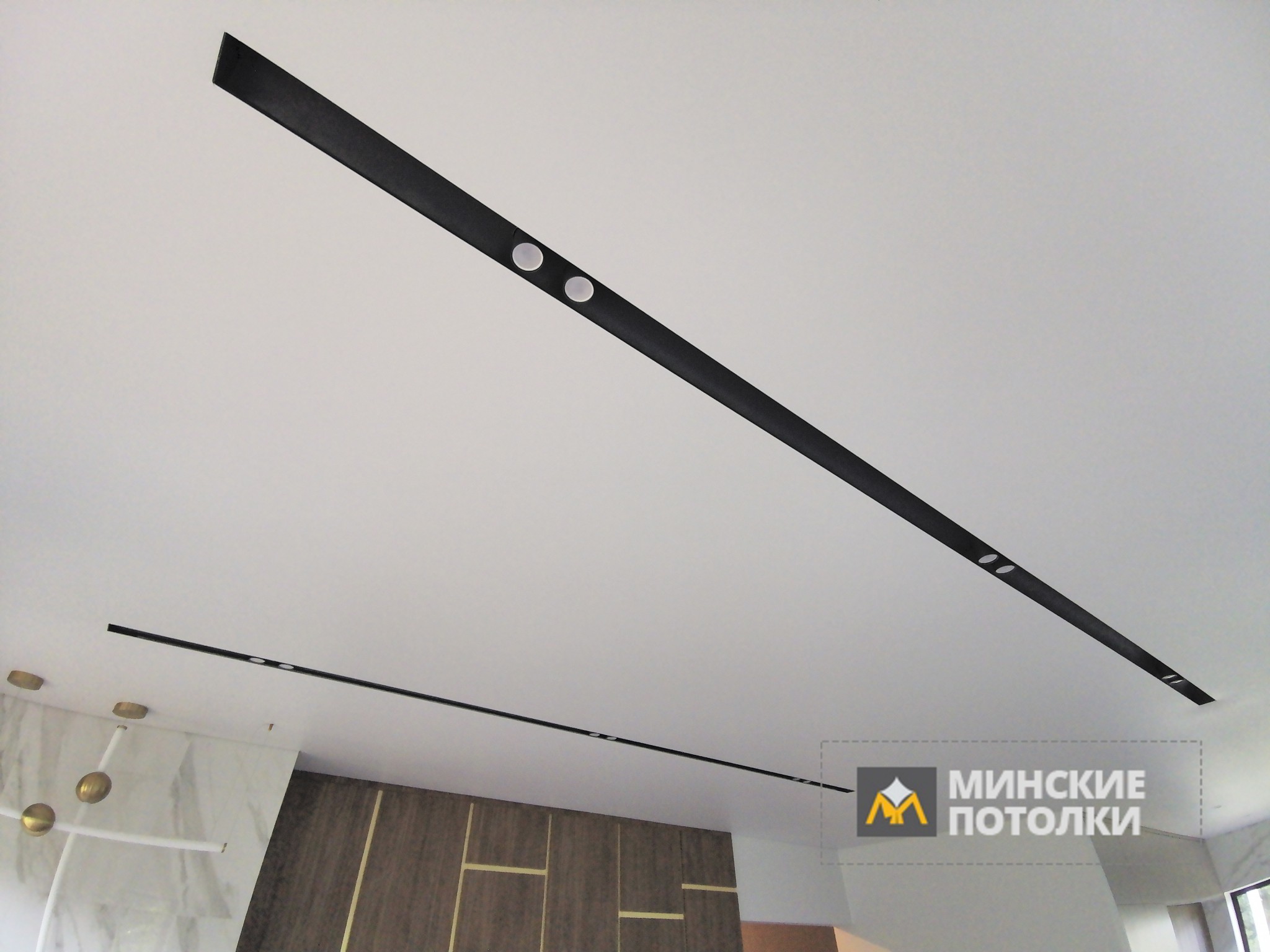 Систему освещения натяжного потолка SLOTT составляют трековые светильники или слоты. Универсальность потолка позволяет воплотить в жизнь любые проекты и схемы освещения.