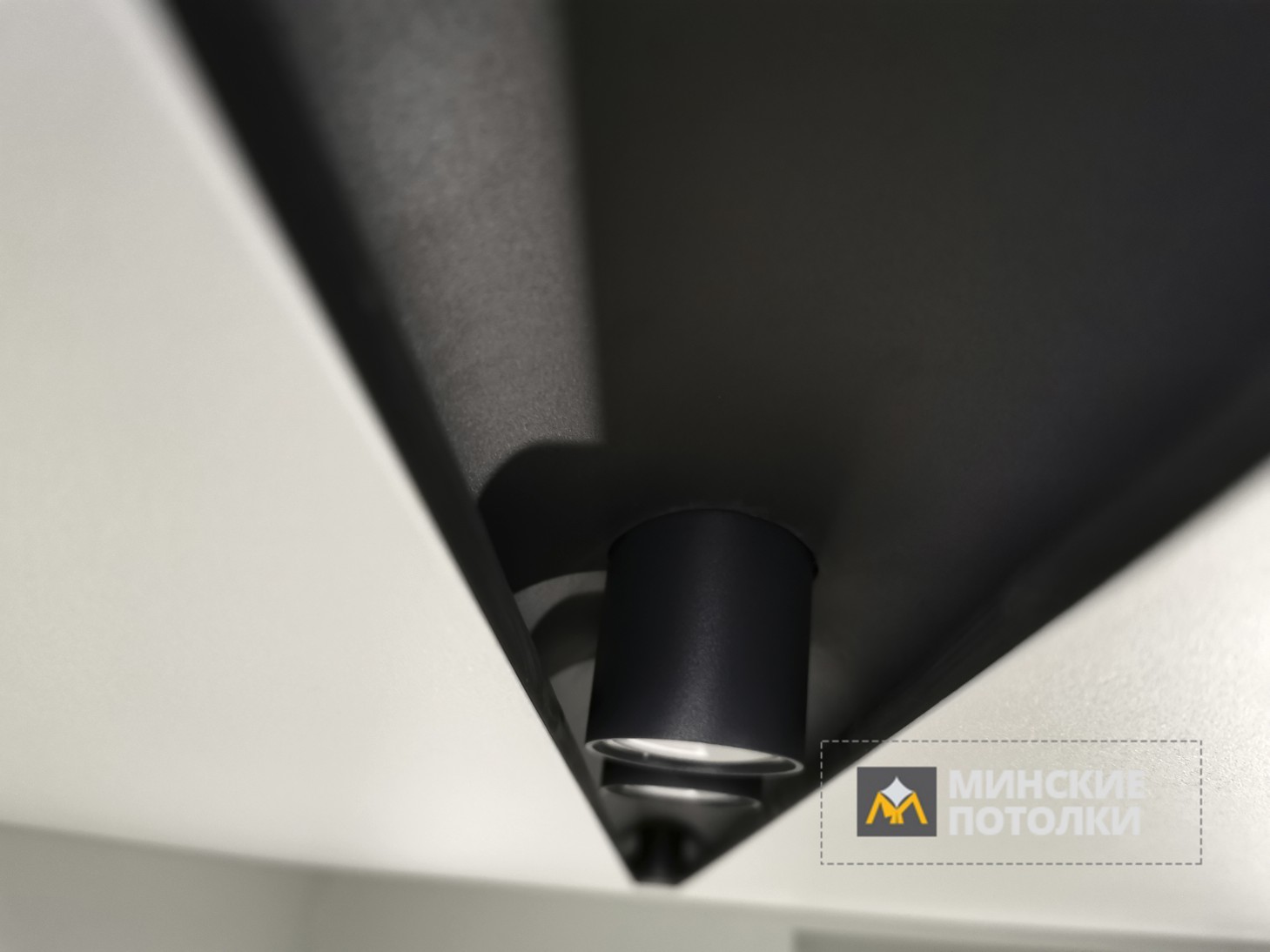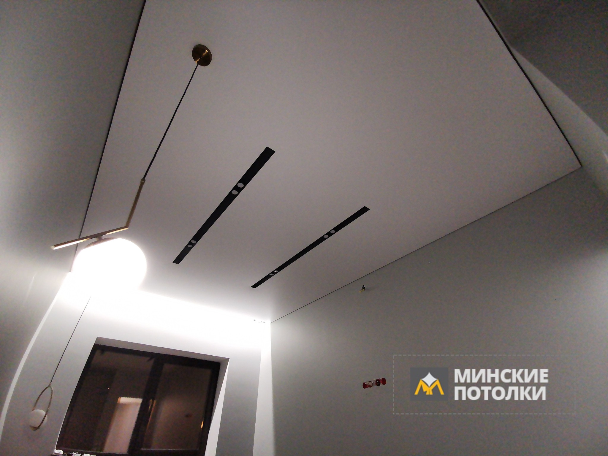 - Натяжной потолок SLOTT имеет только двухцветные черные или белые профили. Для гармоничного сочетания натяжного потолка и профиля нужно, чтобы цветовой оттенок натяжного потолка был тоже белого или черного цвета. Это классическое решение.