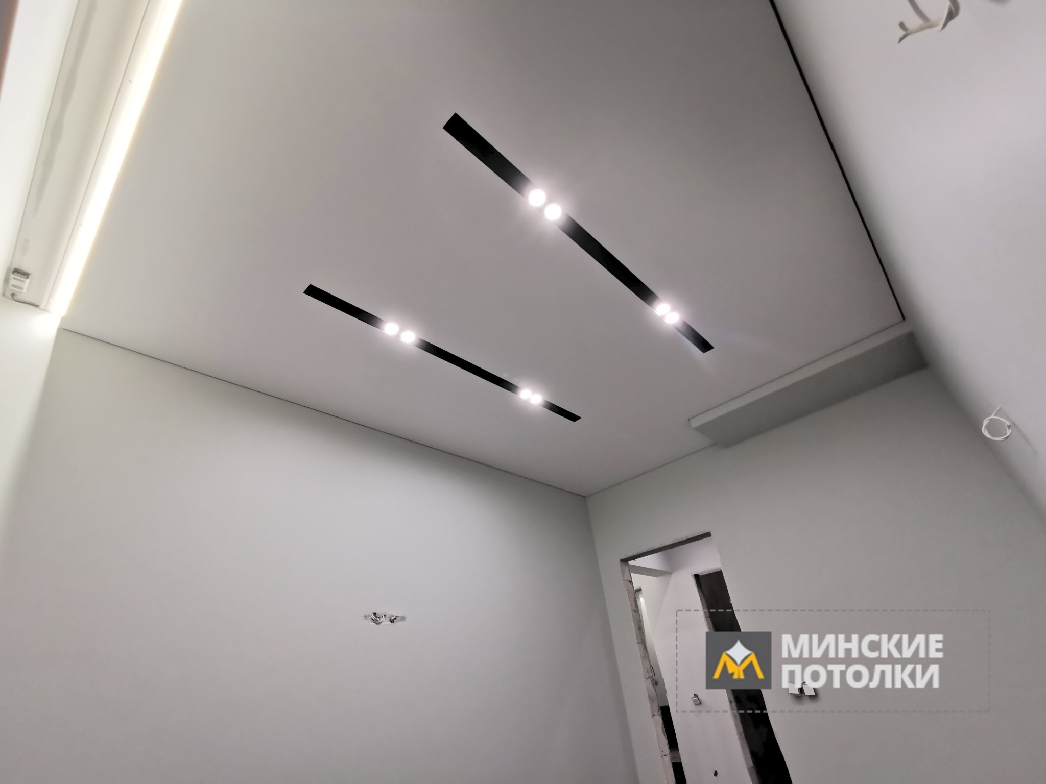 Световые линии являются технологически похожими и близкими на натяжной потолок SLOTT. Принципиальное отличие световой ленты состоит в том, что она оснащена световой лентой и закрыта вровень с потолком рассеивающийся заглушкой. В световой линии отсутствует возможность монтажа спотов или светильников. Но, световая лента, как элемент декора перспективна для разнообразных и оригинальных схем освещения натяжного потолка.